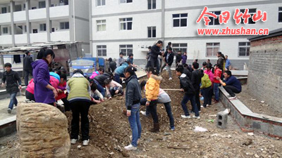 柳林乡一贯制学校师生清理校园建筑垃圾
