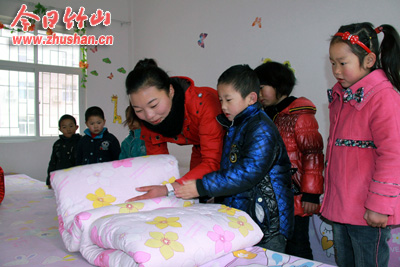 今日竹山网消息 12月4日,官渡镇中心幼儿园的老师在耐心地指导孩子们叠被子。为培养幼儿养成良好的生活习惯和生活技能,该园以“我参与,我快乐;我能干、我健康”为主题,有效开展符合儿童身心健康发展的教学和比赛活动,锻炼孩子们穿、脱、叠等方面的基本生活技能,促进孩子们自理能力的提高。 (朱本双 刘启明)