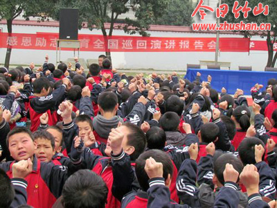 今日竹山网消息 11月28日上午,青少年感恩励志教育宣讲团成员杨笙老师在麻家渡镇九年制学校操场上为到场的近3000余名师生和家长们作了一场主题为“点燃生命的激情 让校园充满爱”的大型感恩励志教育演讲报告会。