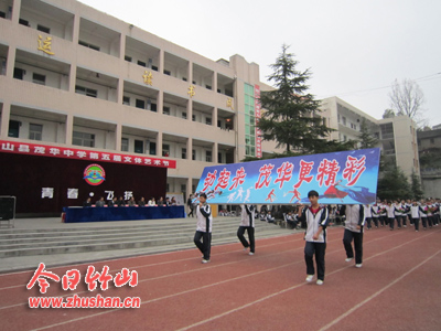 今日竹山网消息 11月14日,茂华中学以“青春·飞扬”为主题的第五届文体艺术节隆重开幕。本届艺术节将有720名学生分组参加13个竞技体育项目的角逐,另有来自该校的400余幅学生优秀书画作品在艺术节期间巡展,200余名学生奉上精彩歌舞表演,为文体艺术节增辉添彩。(张鹏 袁慎敏 吴自国)