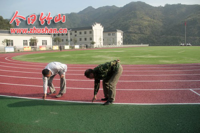 今日竹山网消息 10月30日下午,官渡镇中心学校组织人员对新建运动场进行初验。经过近8个月紧张施工的我县首个乡镇学校塑胶运动场竣工投入使用。
