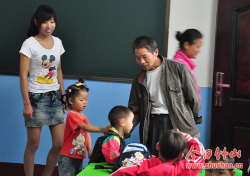 家长们把适龄儿童送进幼儿园