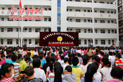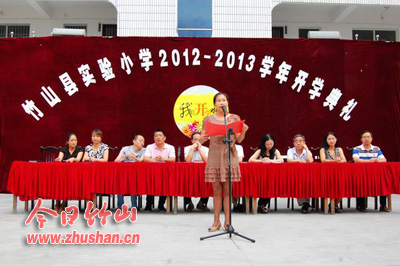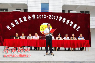 今日竹山网消息 金秋送爽,丹桂飘香,带着对暑假生活的美好回忆,怀着对新学期的美好向往。9月3日,县实验小学全体师生欢聚操场,隆重举行了2012—2013学年度开学典礼。