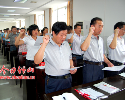 今日竹山网消息 “我是一名光荣的人民教师,肩负着教书育人的责任。我将严格遵守《中小学教师职业道德规范》,爱岗敬业、关爱学生,刻苦钻研、严谨笃学,勇于创新、奋发进取,淡泊名利、志存高远……”8月30日,县职业技术集团学校组织了“学规范、强师德、树形象”教师师德公开承诺活动,130名教职员工高高举起右手,郑重承诺。