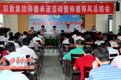 用誓言承诺使命。庄严地承诺,表达了全体教师的决心,将在师德建设中愿意接受全社会的监督,用心教书、用爱育人,为打造平安职教、文明职教、实力职教、活力职教、幸福职教提供强有力的职业道德保障。(苗东升 徐涛)