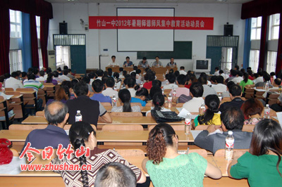 今日竹山网消息 为提高教师队伍整体素质和教育教学质量,打造一支纪律严明、师德高尚、治学严谨、乐于奉献的教师队伍。8月27日,竹山一中拉开了为期四天的师德师风集中教育活动的序幕。