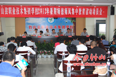 今日竹山网消息 8月26日,县职业技术集团学校召开暑期师德师风集中教育活动动员会议,决定从8月26日至8月30日起开展为期五天的集中教育活动,将以构建和谐教育、提高教职工整体素质、办人民满意教育为目标,以弘扬教师爱岗敬业、创优教育环境、提高教学质量为核心;通过局领导讲政策、讲教育形势,县教研人员讲教学业务,优秀教师代表讲实践经验,教师开展自剖析,增强责任意识,进一步理清思路,科学定位,凝心聚力奏响学校发展的新乐章。会上校长沈敬东作了主题报告,全校教师参加了动员会议。