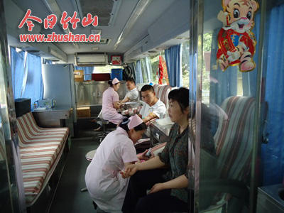 今日竹山网消息 6月6日上午,县采血中心站的工作人员驾车来到得胜中学采集血样,开展无偿献血活动。该校广大教职员工积极响应号召,踊跃投身到无偿献血队伍中。登记、量血压、查血型、化验……粗长的针头插入他们手臂静脉里,汩汩鲜血流入储血袋内,他们脸上依然荡漾着甜美的微笑。