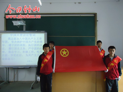 今日竹山网消息 5月25日上午,得胜中学在阶梯教室隆重举行了严肃而富有教育意义的入团宣誓仪式。111名学生在在鲜艳、火红的团旗下,举起握拳的右手庄严宣誓,宣告自己正式成为一名光荣的共青团员。