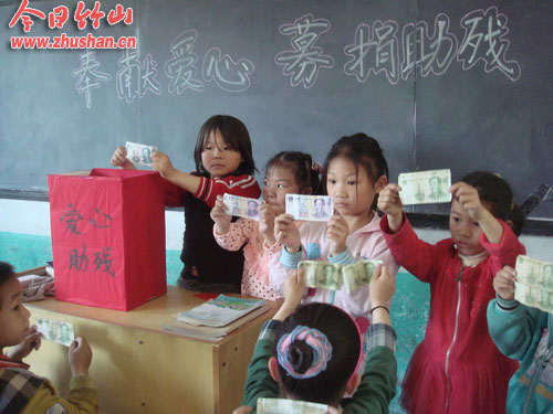 今日竹山网消息 5月17日上午,伴随着一曲《爱的奉献》在校园飘荡,得胜小学师生纷纷把一元、五元、十元、五十元……一张张“爱心助残款”纷纷投进了捐款箱。在第二十二个“全国助残日”来临之际,得胜小学举行了“奉献爱心、募捐助残”活动,经过30多分钟捐款活动,累计捐献的1570.50元。(万飞)