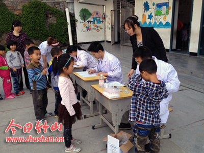 今日竹山网消息 为及时了解幼儿身体发育状况,切实保障幼儿身体健康,5月17日,上庸镇东风幼儿园积极配合镇卫生院的医生对全园幼儿进行常规体检。体检内容包括:身高体重检查、龋齿、血色素检查等项目。下阶段,医生们还将根据各项检查结果,参照体征指标标准值对每一位幼儿作综合性评价,形成一对一的体检报告单并及时向幼儿园及各位家长反馈。幼儿园还将镇卫生院提供的分析和统计结果,建立档案,通过家园联手共同促进幼儿健康成长。(陈善良)
