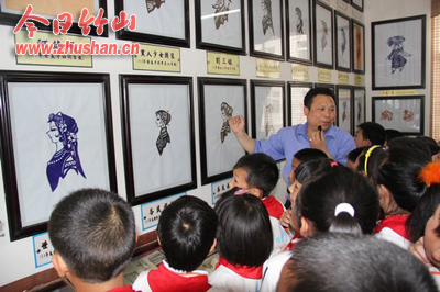 参观中,该馆馆长曾和林将馆内藏品向师生们作了详细介绍,讲解了剪纸作品及绘画作品的一些技术要点,鼓励孩子们自己动手,发挥想象,创作出自己的作品。