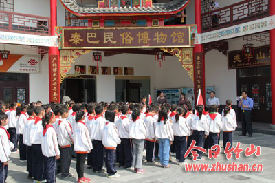 今日竹山网消息 5月8日下午,官渡中心学校组织四年级120余名师生参观了秦巴民俗博物馆。