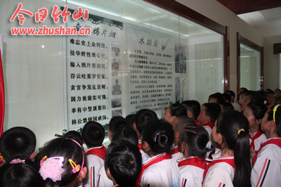 在参观现场,孩子们对这些民间艺术作品表现出极大的兴趣,每到一处,都发出啧啧的赞叹。在烟具展室前,孩子们不约而同齐诵“难忘史上众列强,侵华野性丧心狂。输入鸦片毒国民,吞云吐雾梦黄梁。贪官争发乱世财,国力衰弱实可殇。幸有中坚顶梁柱,林工禁烟国威扬。”