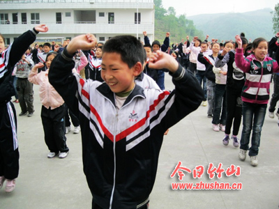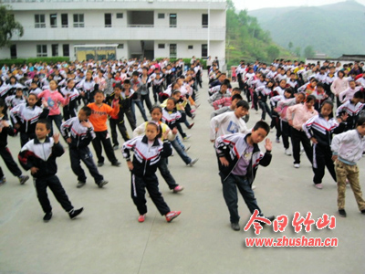 今日竹山网消息 4月26日课间,伴随着欢快悦耳的歌声,潘口小学的学生跳起校园集体舞《童年》。今春开学以来,该校大力推广湖北版校园集体舞,丰富了“大家唱、大家跳”艺术活动内涵,并与开展“阳光体育”运动有机结合,让学生快乐学习、健康成长。(王定生)