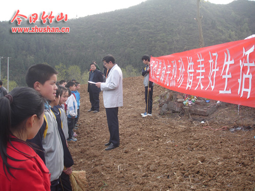 今日竹山网消息 清明节里祭忠魂,先烈豪气耀昆仑。为缅怀革命先烈,教育广大学生继承革命遗志,坚定理想信念,4月2日下午,三台九年一贯制学校全体师生怀着崇敬的心情,来到张振武烈士陵墓前,缅怀先烈的丰功伟绩,祭奠烈士英灵。