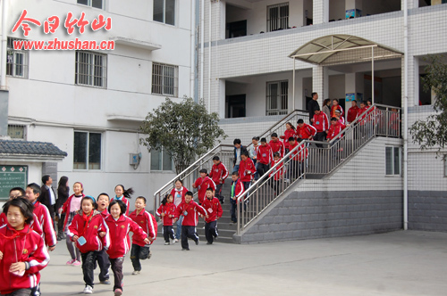 今日竹山网消息 3月26日,随着县实验小学校园广播室播放的紧急通知,该校2300名师生按照指定的路线迅速撤离到操场上,这是该校开展紧急疏散演练落实安全教育月活动的具体体现。