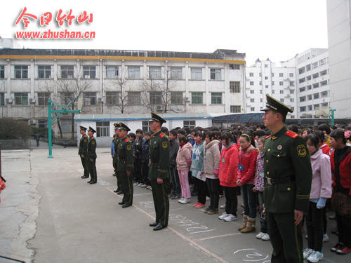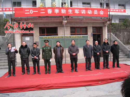 今日竹山网消息 “我宣布2012年春季新生军事化训练正式开始”,2月27日上午,随着校长贺朝炎的一声宣布,县职业技术集团学校2012年春季入学的400多名新生在教官的指挥下拉开了军事化训练的序幕。