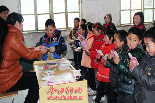 今日竹山网消息 2月28日,官渡中心学校组织专班在官渡财政所工作人员配合下,对全镇496名贫困寄宿生发放生活补助金212875元。