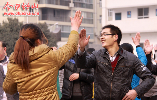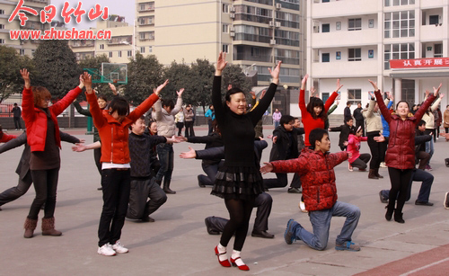 今日竹山网消息 2月26日,参训教师在张振武小学进行新版校园集体舞汇报演练。为认真落实《省教育厅关于举办第三届湖北省中小学校“大家唱、大家跳”艺术教育展演活动的通知》(鄂教体艺<2011>8号)和《省教育厅关于开展2011年湖北版校园集体舞推广培训“送教到基层”活动的通知》(鄂教体艺函<2011>30号)精神,进一步丰富中小学校园集体舞教学内容,县教育局开展了为期两天的湖北版校园集体舞推广培训活动,参加本次培训活动的各乡镇中心学校、县直各初中和小学教师共有141名。据悉,湖北版校园集体舞由我省自主编创。与旧版相比,新版校园集体舞曲子更欢快,律感更强劲,动作也更加优美,已列入湖北省第三届中小学“大家唱、大家跳”艺术教育现场集中展演阶段必选内容。 (朱本双 黄敏 杨旭东)