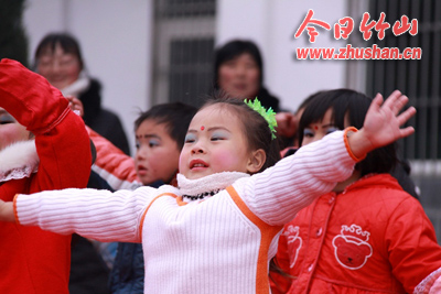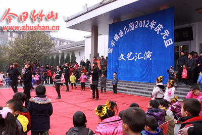 今日竹山网消息 12月29日上午,宝丰镇幼儿园喜气洋洋,龙腾虎跃,师生、家长欢聚一堂,载歌载舞,共同庆祝新年的到来。快乐的舞蹈演绎着青春的活力,开心的笑脸洋溢着生活的幸福,朵朵红花激励着孩子们自信、上进。 (朱本双 周云)
