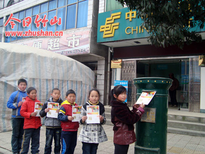 今日竹山网消息 12月26日下午,竹坪小学五(1)班学生刘汇源和他的伙伴们,将自己填写完整的新年贺卡,寄给了资助自己“爱心包裹”的捐赠人。