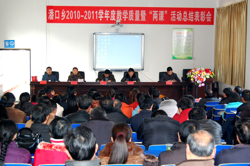2011潘口教育取得了令人振奋的好成绩。中考再一次创造了历史新辉煌,上郧阳一中12人,上竹山一中93人,其中单科语文、数学、英语、化学、历史、地理、生物、体育等学科进入全县前七强,这是潘口中学有史以来上省市重点高中人数最多的一年;小考全县综合排名位居第四,也连续四年创造了前七的好成绩,为潘口中学输送了一大批合格的学生。其中英语、数学、科学、品社都获得了单科前三的好成绩,这些成绩赢得社会各界的广泛关注,“潘口教学模式”成为人们谈论话题。