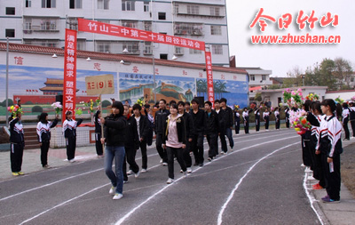 今日竹山网消息 为深入贯彻落实《国家学生体质健康标准》,推动学校体育工作的正常开展,11月24日下午,竹山二中隆重举办第二十届田径运动会。本次运动会包括100m短跑、跳远、铅球投掷、4×100m接力等个人和团体共22个比赛项目,全校有716名运动员参加角逐。本届运动会的主题是:“和谐、拼搏、奋进、强身”。运动会组织严密,赛场紧张有序。运动会上,同学们比技能、比风格、比秩序,增进了友谊,体现了文明,是一届精彩、文明的盛会。本届运动会激发出来的合作理念、集体观念、拼搏精神、竞争意识将激励全体同学奋发学习,追求理想,追求才干,追求创新,追求发展。(朱本双 唐平 朱训林)