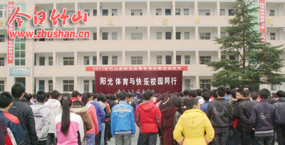 今日竹山网消息 11月24日上午,全县中小学阳光体育冬季长跑活动启动仪式在茂华中学隆重举行。县教育局局长李大智、副局长贺进修等领导莅临活动现场,并作了讲话。