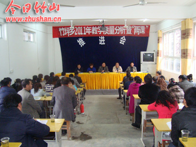 今日竹山网消息 11月18日,竹坪乡2010至2011学年度教育教学质量分析暨“两课”活动推进会在中学阶梯教室召开。竹坪乡党委副书记、政协主席张富山,党委委员、副乡长权翠菊到会并讲话。