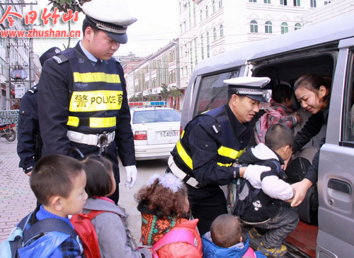 今日竹山网消息 11月18日下午,宝丰派出所民警和县交警二中队交警在该镇育才双语幼儿园联合核查校车乘坐幼儿人数。日前,该镇公安、教育强强联手,加强对校车司机安全教育管理和校车行驶安全管理,认真执行校车安检制度,严格落实责任制和责任追究制,切实加强山区学校校车安全管理,确保每一名中小学生和幼儿的生命安全。 (朱本双 何平)