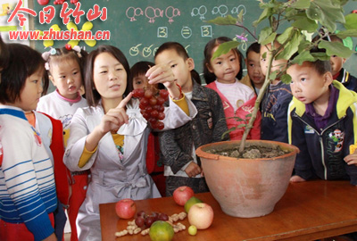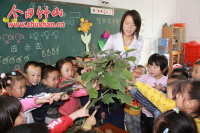 今日竹山网消息 10月10日,宝丰镇幼儿园教师正在生动地为幼儿讲解《植物的身体》。为使幼儿在学中玩,玩中学,发挥幼儿的主体作用,促进幼儿各种能力的发展,该园在教育教学中力求给幼儿创设丰富多彩的生活环境、和谐宜人的物质环境、健康活泼的活动环境,使幼儿鼓起勇气,培养自信,建立信心,健康成长。 (朱本双 周云)