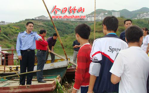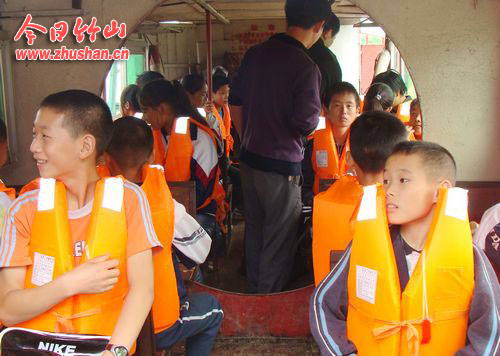 11点30分,学生顺利抵达渡口,董军坐镇指挥,上庸派出所所长魏军耐心地向学生讲解安全知识,民警们逐一检查学生所穿的救生衣;上庸镇中心学校校长张光明和教师们忙碌地安排学生上船。