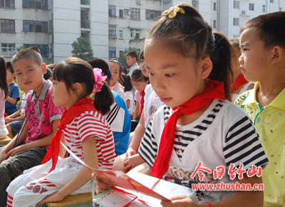 今日竹山网消息 “弟子规, 圣人训……”9月1日上午9时,县实验小学两千余名学生在操场上背起了《弟子规》,拉开该校2011秋季开学典礼序幕,各班优秀学生、进步学生、优秀班干部、优秀少先队干部和先进班集体上台领奖。