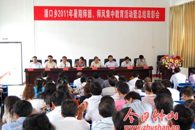 今日竹山网消息 “在师德师风方面,教师要珍爱岗位,发挥为人师表的作用,服从学校管理,以‘三比三创’、‘争先创优’为抓手,在全乡上下形成‘比师德、比奉献、比成绩、创教学质量一流学校、创后勤管理示范学校、创安全卫生文明学校’,各项工作实现争先进位,用实际行动为学校的发展增添光彩。”这是8月26日,潘口乡中心学校校长郭正安在暑期师德师风集中教育活动会议上提出的要求。