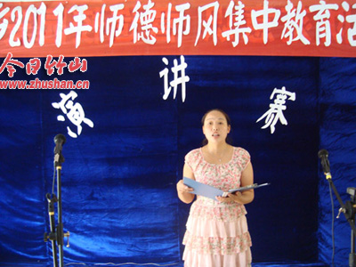 今日竹山网消息 8月26日下午,竹坪乡教师利用暑假师德师风集中教育活动的机会,开展“爱岗敬业、关爱学生”及纪念中国共产党建党90周年演讲赛。14名参赛选手用自己对教育的感悟和用身边的典型,深刻阐释了怎样爱岗敬业和关爱学生,饱含激情的赞扬了建党90周年的伟大成就。选手们的精彩演讲赢得了阵阵热烈的掌声,也感染着在场的每一个人。