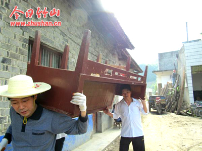 今日竹山网消息 6月1日,柳林乡洪坪小学教师们正顶着炎日,帮洪坪村移民李应忠等搬家。龙背湾移民搬迁开始以来,该校教师积极报名参加乡“移民应急小分队”,先后出动16人次义务帮助移民搬家,在4月下旬洪坪移民场坪滑坡抢险中,该校应急队员也是第一时间参与。(龚 斌 摄)