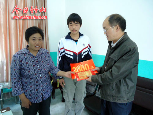 卢岳同学家住潘口乡渔岭村2组,自幼聪明好学,品学兼优。可是家境贫寒,再加上2007年父亲因车祸摔成重伤,至今只能干点轻活,母亲残废,致使原本贫困的家就更雪上加霜。卢岳几次想放下读书的念想,但爱书的他又坚持了下来。步入潘口中学后,学校为他减免生活费,争取寄宿生贫困补助,才勉强安顿下来。市移动公司知道这一情况后,就立即拿3000元来资助他。(吴森 唐艳丽)