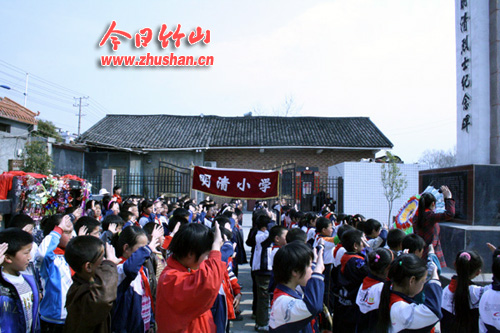 今日竹山网消息 3月31日,城关镇明清中心小学200多名少先队员列队向为解放竹山英勇献身的许明清烈士行少先队礼。全体师生在纪念碑前宣誓,向烈士敬献花圈并致哀3分钟,寄托对革命英烈的无限缅怀。