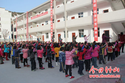 这一系列周到细致的防寒保暖工作,提高了教师的保育质量,让幼儿在冬天仍然感到健康快乐。图为幼儿在教师指导下学习幼儿体操。(陈正东)