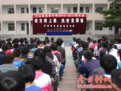今日竹山网消息 10月11日,茂华中学举行以“带文明上路,携安全回家”为主题的交通安全法规知识讲座。交警用发生在学生身边的交通事故案例讲解了《道路交通安全法》中的有关规定,并针对中小学生上学、放学路上容易发生的交通安全事故及如何预防等进行了详细解读。(施晓霖 吴自国)