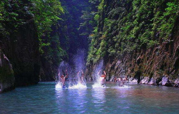 首先迎候我们的是崇山峻岭。坐在越野车里,关于武陵峡的所有悬念都在期待中潜滋暗长。终于,在经过一段蜿蜒直下后,越野车把我们带到了武陵峡。两岸高山,中间溪流潺潺,这貌似很多山里风景的翻版,让我的心里多少有些失望。