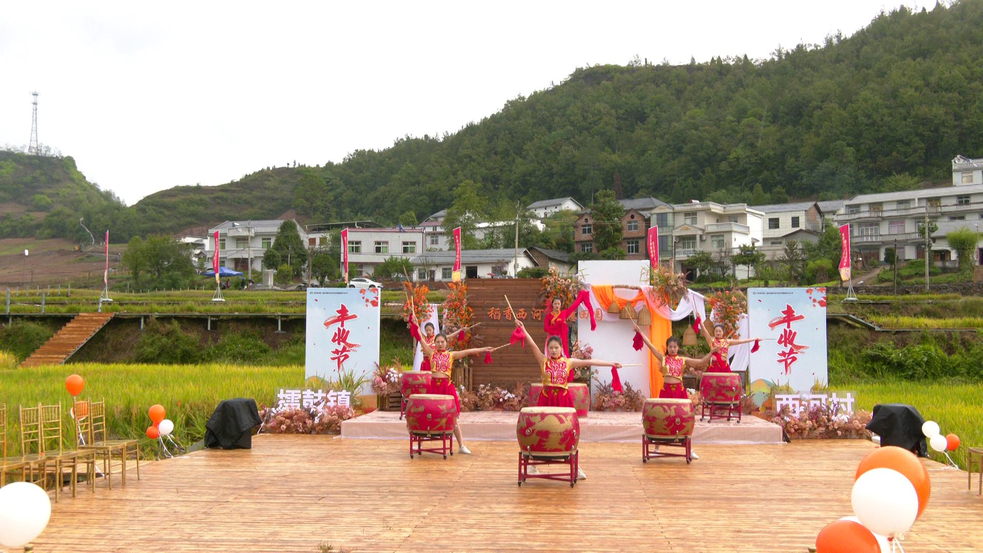 庆丰收、迎盛会,活动现场设置在西河村的稻田里,随着歌曲《共筑中国梦》、歌舞《中华鼓魂》《愚公移山》、川剧《变脸》等文艺节目轮番上演,充分展现农村文化特色和新时代农民投身乡村振兴、共建美丽乡村的精神风貌,为广大群众带来了一场精彩的“丰收盛宴”。