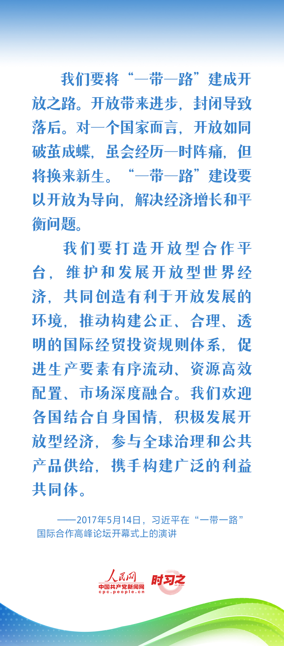 “‘一带一路’倡议,有利于扩大和深化对外开放。”习近平主席多次强调坚持对外开放的重要性,在扩大对内对外开放中强动力、增活力,将“一带一路”建成开放之路。