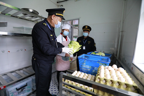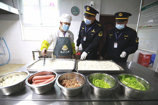 现场检查中,执法人员核查学校食堂各类证照是否齐全有效,食堂从业人员是否取得有效健康证明,食堂食品公示栏是否规范,落实两个责任等情况;检查学校食堂食品原材料供货商资质、索证索票、登记台账、加工操作、原料贮存、食品留样、清洗消毒、餐饮环境卫生条件是否合格,以及是否存在过期、发霉变质和储存不当等食品安全隐患。在检查过程中,执法人员同时对学校食堂从业人员进行宣传教育,引导其严格落实食品安全制度,自觉守法经营,建立完善校园食品安全长效管理机制。