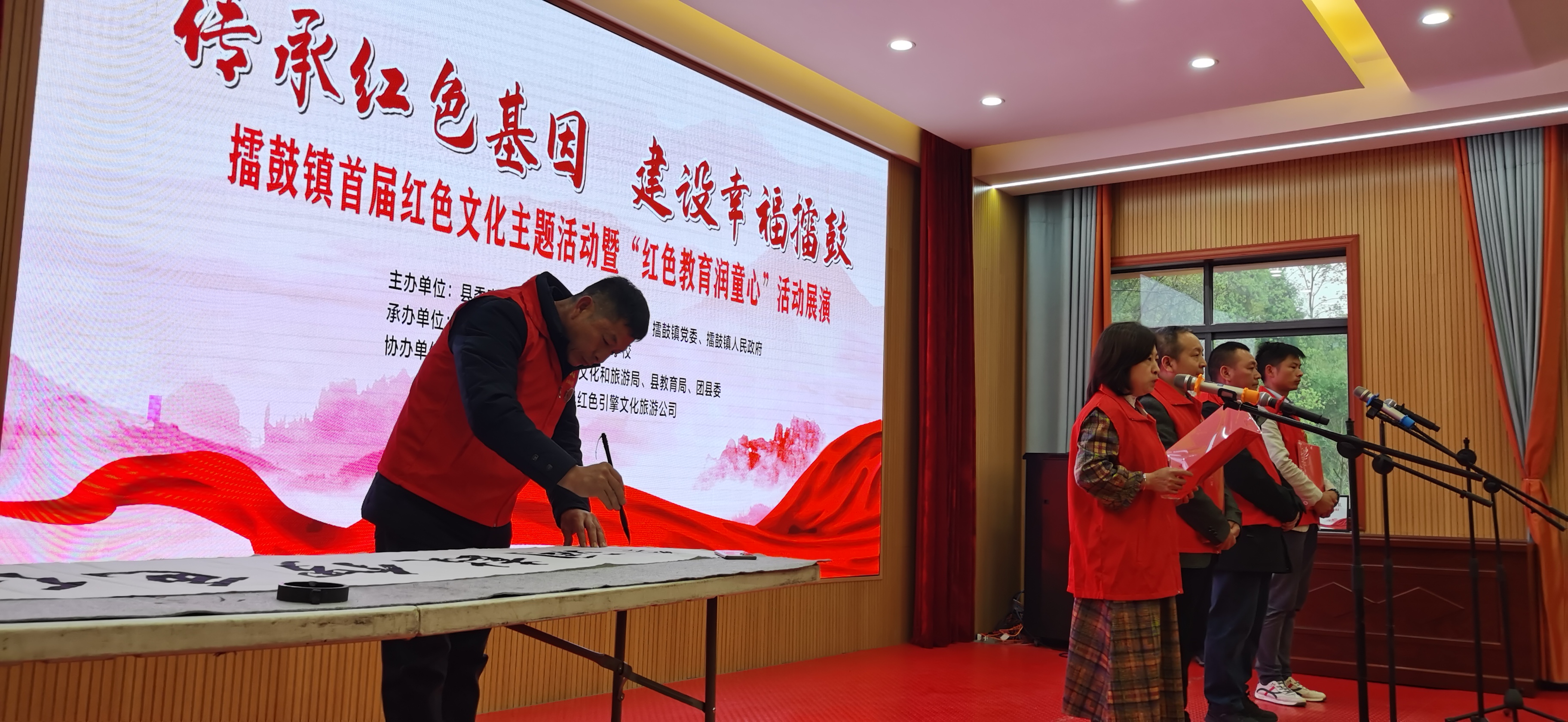 今日竹山网消息 “我们来自得胜镇稻香诗社,今天在这里为大家朗诵几首自己创作的诗词......”4月1日,擂鼓镇首届红色文化主题活动暨“红色教育润童心”展演在锣鼓洞红色教育基地举行,得胜镇稻香诗社应邀参加。四名农民社员朗诵了《凭吊锣鼓洞烈士》《缅怀许明清烈士》《茶香四季》《乡村振兴奋斗如你》《乡愁》等诗词,一名农民社员现场展纸挥毫书写“红色锣鼓洞”。真情、本色的诗词朗诵和毛笔书法创作,赢得了观众的阵阵掌声。