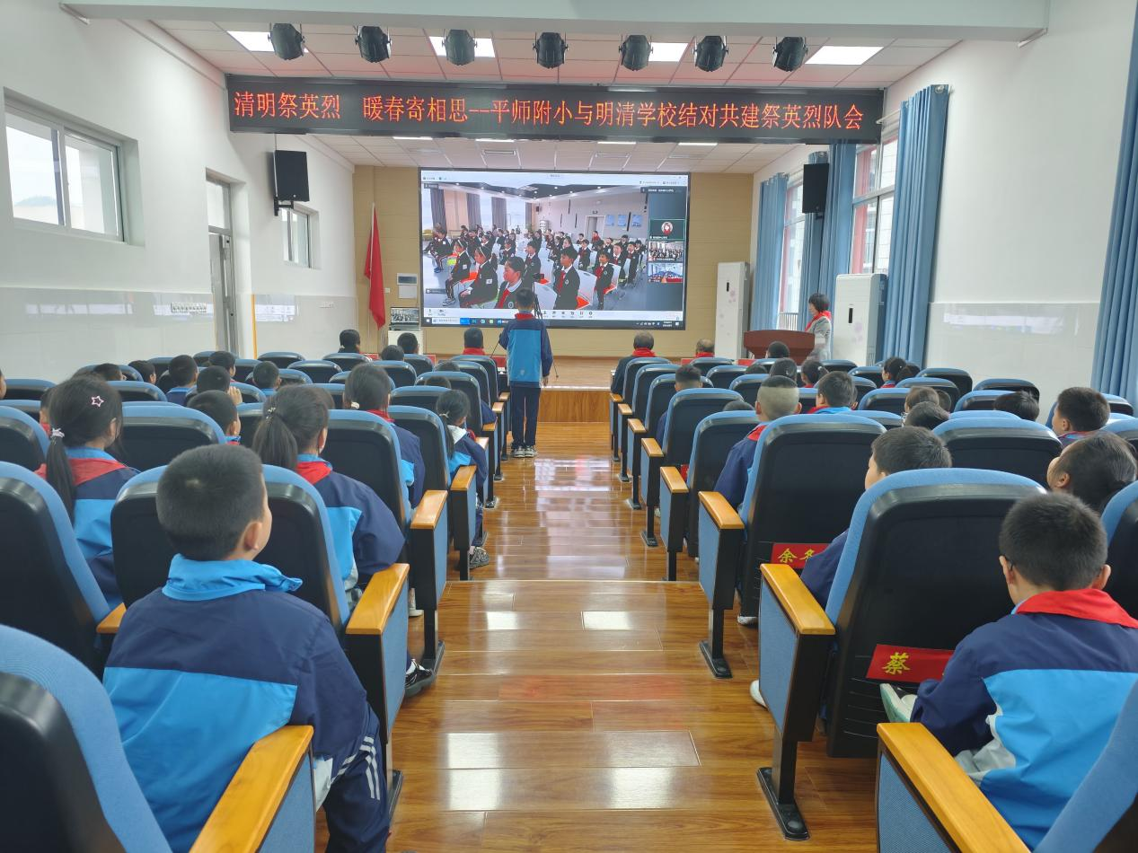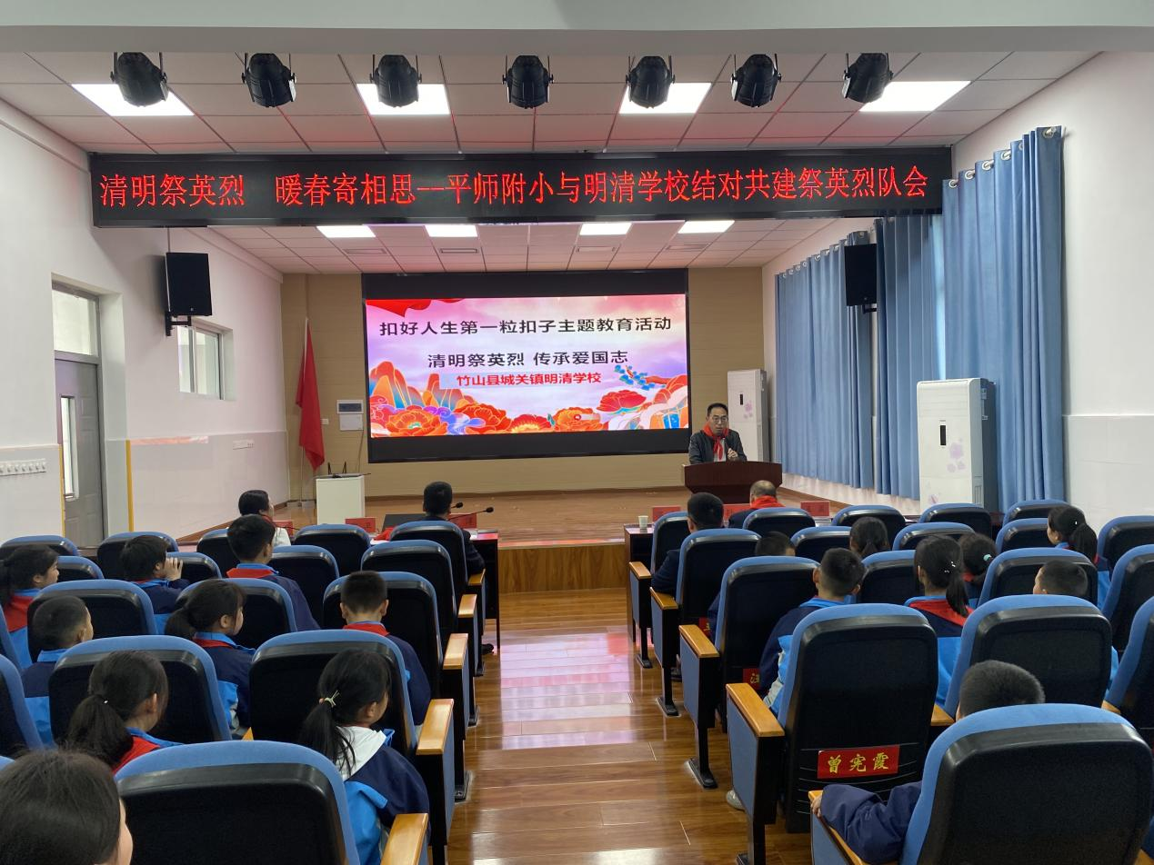 今日竹山网消息 4月1日,城关镇明清学校与浙江省平湖师范学校附属小学联合开展“清明祭英烈 暖春寄相思”主题活动。