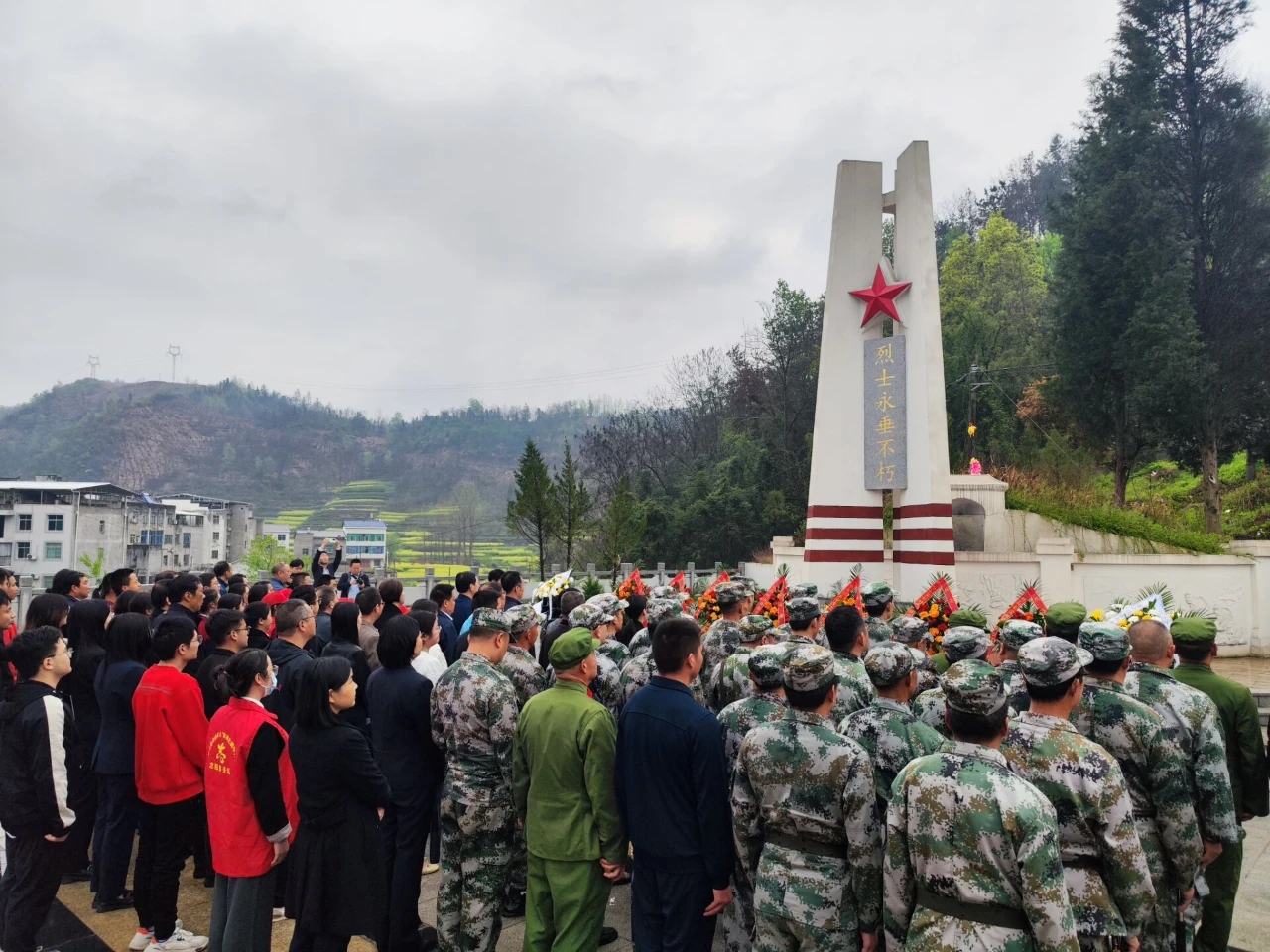 仪式结束后,参与活动的相关负责同志前往锣鼓洞战役烈士陵园开展祭英烈活动。烈士纪念碑下,庄严肃穆,全体党员举起右拳重温入党誓词,再次提醒自己,要牢固树立党员身份意识,更加坚定了继承先辈遗志、奉献热血之力的强大信念。同时向长眠于此的革命先烈表达崇高的敬意和深切的缅怀,向为争取民族独立和人民解放,用鲜血和生命书写英雄史诗,拯救民族危亡、捍卫民族尊严而英勇献身的烈士默哀行礼。