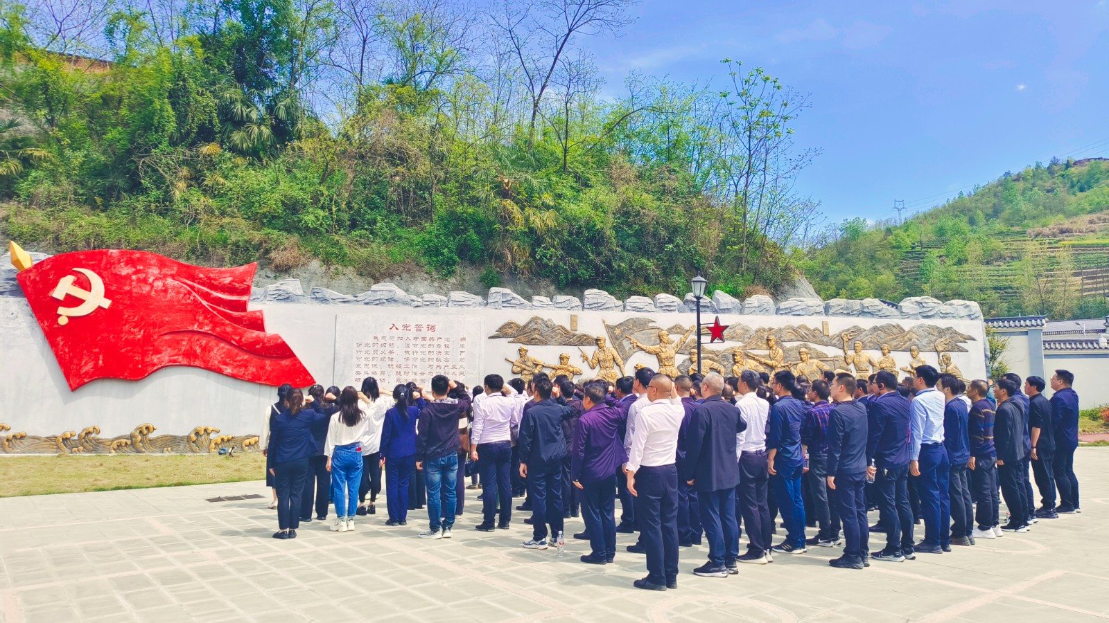 活动现场,庄严且肃穆。大家整齐排列,瞻仰纪念碑,行静默礼,以深深的哀思和敬意,缅怀为民族解放和人民革命事业英勇献身的革命先烈。随后,全体学员跟随现场讲解员的步伐,了解到了在擂鼓镇锣鼓洞展开的激烈战斗。通过缅怀先烈、祭奠忠魂,让每位学员再一次接受了心灵的洗礼,进一步坚定了立场信念和初心使命。