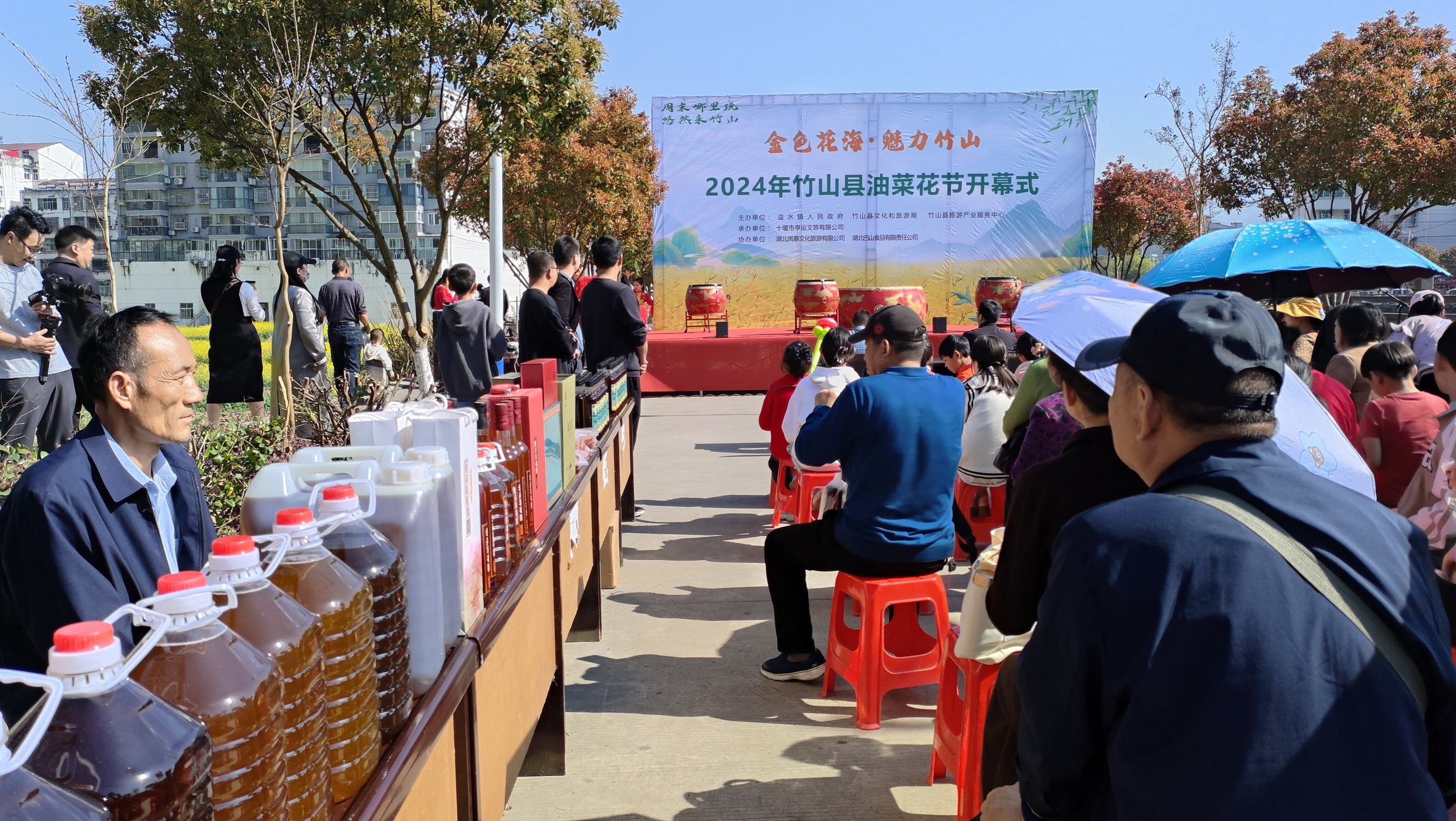今日竹山网信息 近日,笔者在溢水镇二桥头油菜花节的展销会上看到,退役军人销售农副产品的摊位一字排开,新鲜蔬菜、香菇、手工面条、草莓酒、蜂蜜、茶叶等产品摆满了货架,供游客选购。